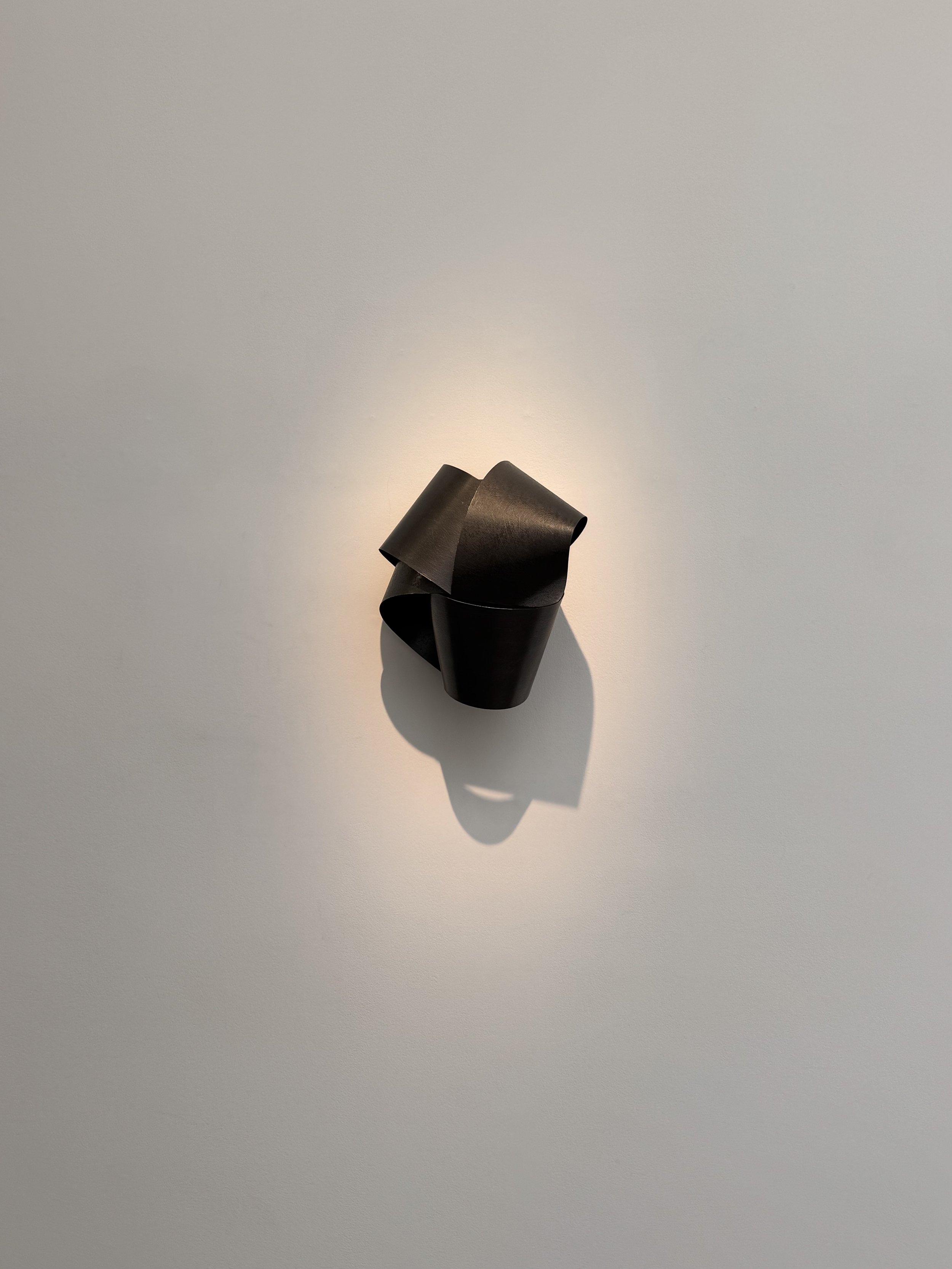 La relation entre les matériaux est elle aussi constamment réinterrogée. Les attentes (le papier comme fragile, le ciment comme solide) sont déstabilisées. L’équilibre, la pression et la forme révèlent des forces et des vulnérabilités inattendues, suggérant que la matière elle-même participe à une forme de chorégraphie. Plier, courber, nouer : ces gestes empruntent autant aux savoirs domestiques qu’au comportement propre des matériaux, produisant des formes qui tiennent, relient et se transforment. Le son, le rythme et le résidu jouent également un rôle. Les restes de dessins antérieurs sont réactivés, leurs traces réorganisées en de nouveaux motifs qui laissent entrevoir une musicalité latente. Les œuvres portent en elles la mémoire de leur fabrication, comme si chaque marque était à la fois trace et prolongement.