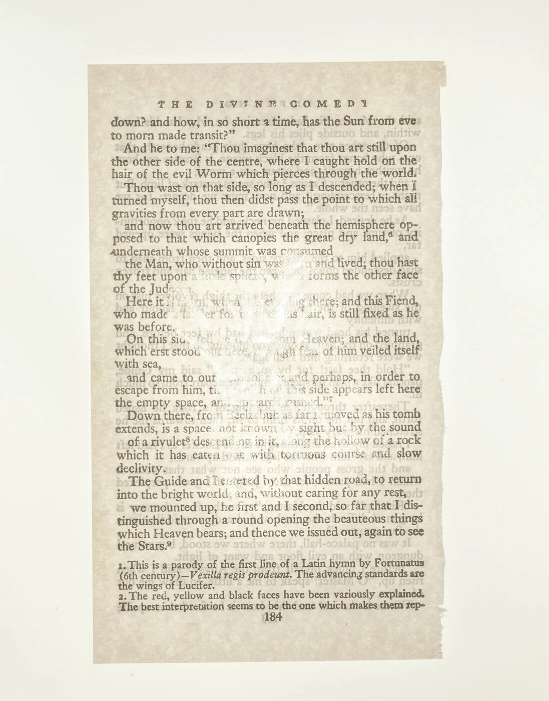 Les vers de Dante inscrivent la Terre au centre de l’Univers, et chacune des trois parties du poème s’achève par le mot « étoiles » (stelle), révélant ainsi une sorte d'architecture poétique et affirmant, à travers le placement du mot lui-même, une présence ultime. Les étoiles sont là, quelque part, dans chacune des strates de notre univers ; elles en sont le terme. Les photographies de Sabine Mirlesse, à leur tour, s’éveillent des profondeurs géologiques, où partant de l’obscurité la plus profonde, l’artiste feint de nous conduire vers la lumière, pour nous plonger à nouveau dans la nuit interstellaire.